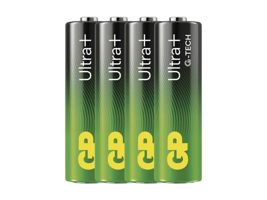 Výkonné alkalickétužkové baterie typu AA (LR6) GP Ultra Plus poskytují spolehlivý a dlouhodobý výkon pro každodenní použití. Vhodné pro zařízení s vyšším odběrem energie, jako jsou elektronické přístroje, svítilny nebo bezdrátové senzory.