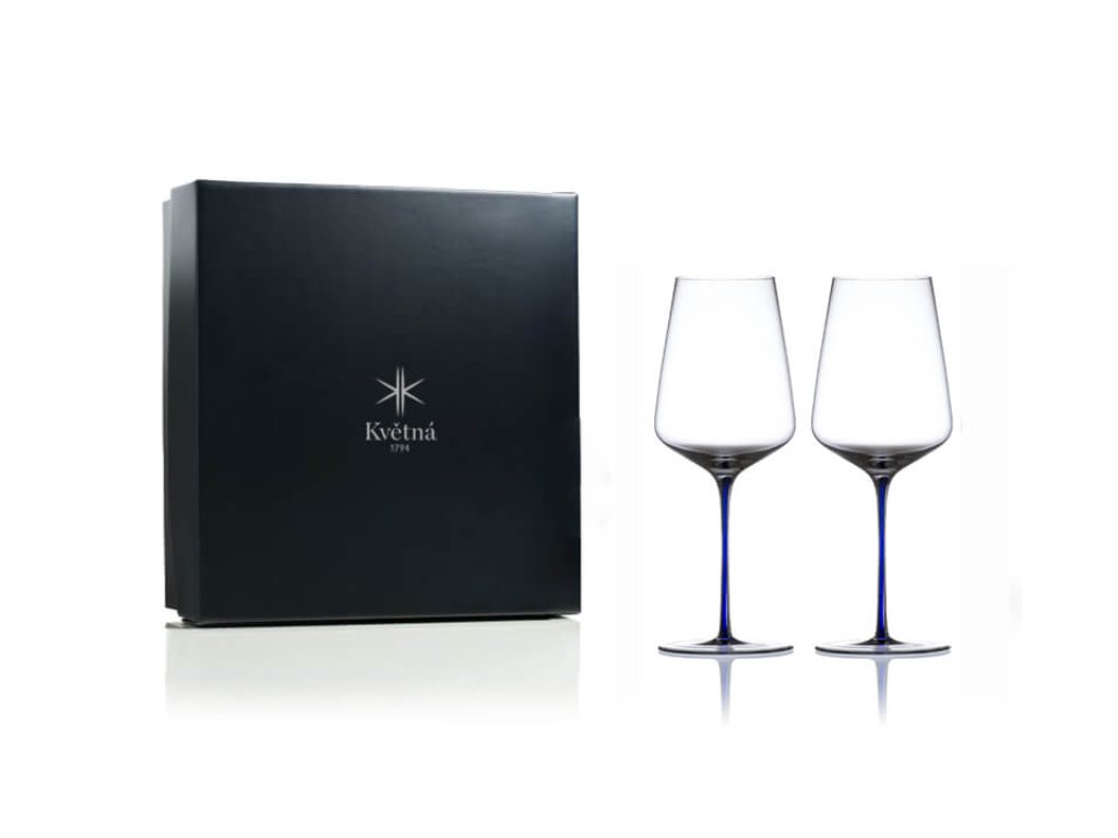 Ručně foukaný dárkový set 2 sklenic Květná 1794 Auriga Universal v modrém provedení. Univerzální tvar a objem 540 ml pro krásně rozvinuté aroma i chuť vína.