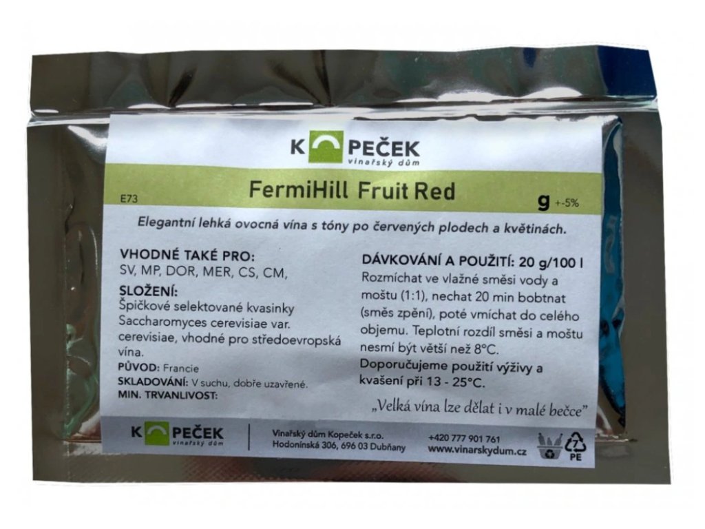 20 g/100 l. Rozmíchat ve vlažné směsi vody a moštu (1:1), nechat 20 min bobtnat (směs zpění), poté vmíchat do celého objemu. Teplotní rozdíl směsi a moštu nesmí být větší než 8°C. Doporučujeme použití výživy a kvašení při 13 - 25°C.