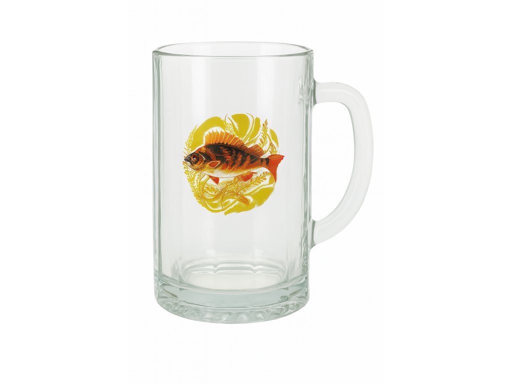 Robustní pivní korbel s originálním potiskem ryby přináší do každého doušku osvěžující atmosféru přírody. Skvěle se hodí nejen pro rybáře, ale i pro milovníky tradičního skla a poctivého řemesla.