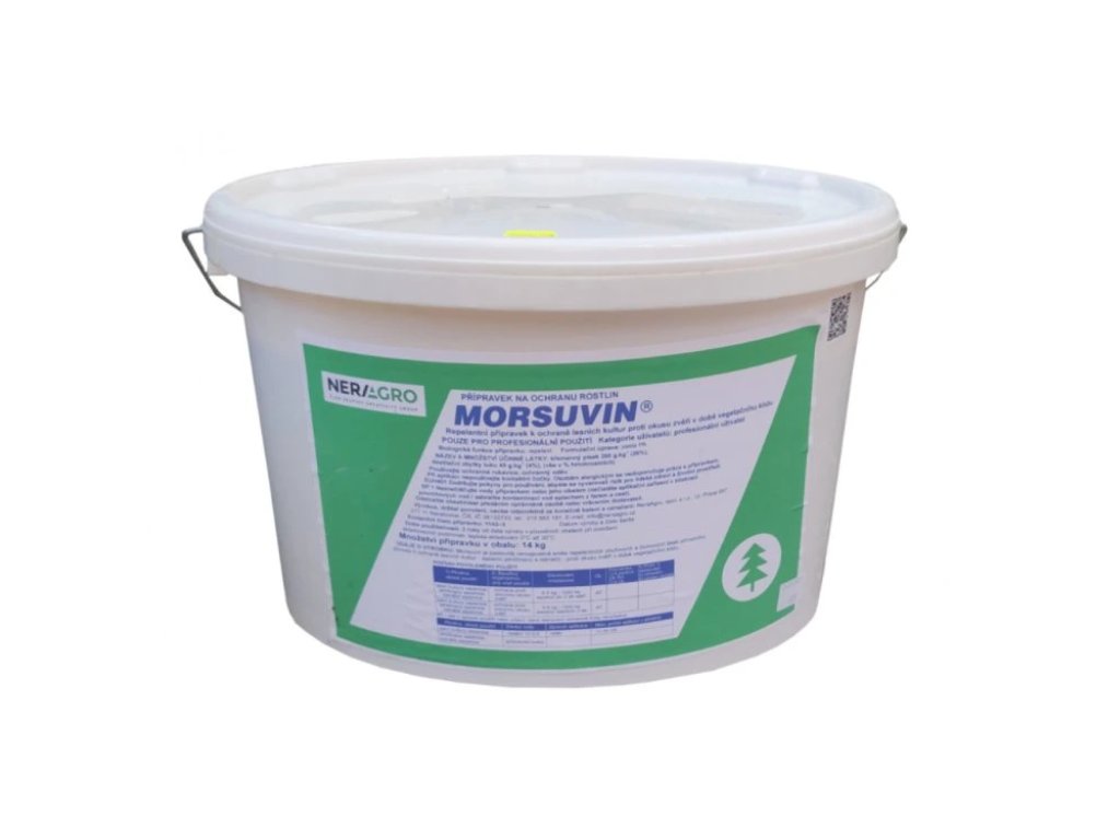 - Lesní kultury sazenice, jehličnany sazenice, listnáče sazenice (ochrana proti zimnímu okusu zvěří) 5 - 6 kg / 1000 ks sazenic starších 2 let / OL 0 dní (nátěr při ředění v poměru 10 kg Morsuvinu : 0,5 l vody; max. 1x v roce)