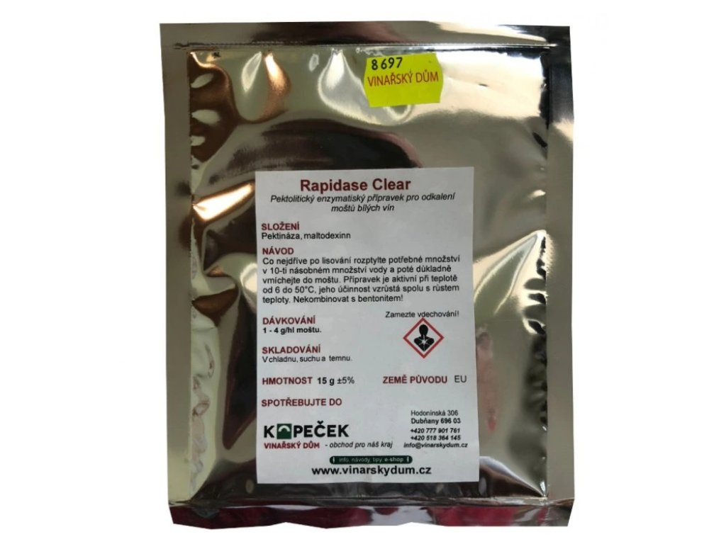 Pektolytický enzymatický přípravek pro odkalení moštů bílých vín. Odkalovací enzym.