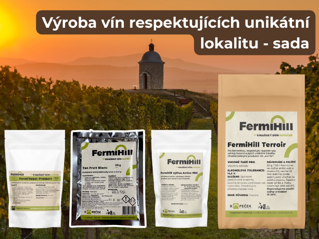 - FermiHill Terroir (20 g) – selektovaná aromatická kvasinka s výrazným terroir efektem, pomáhá zdůraznit charakter odrůdy.