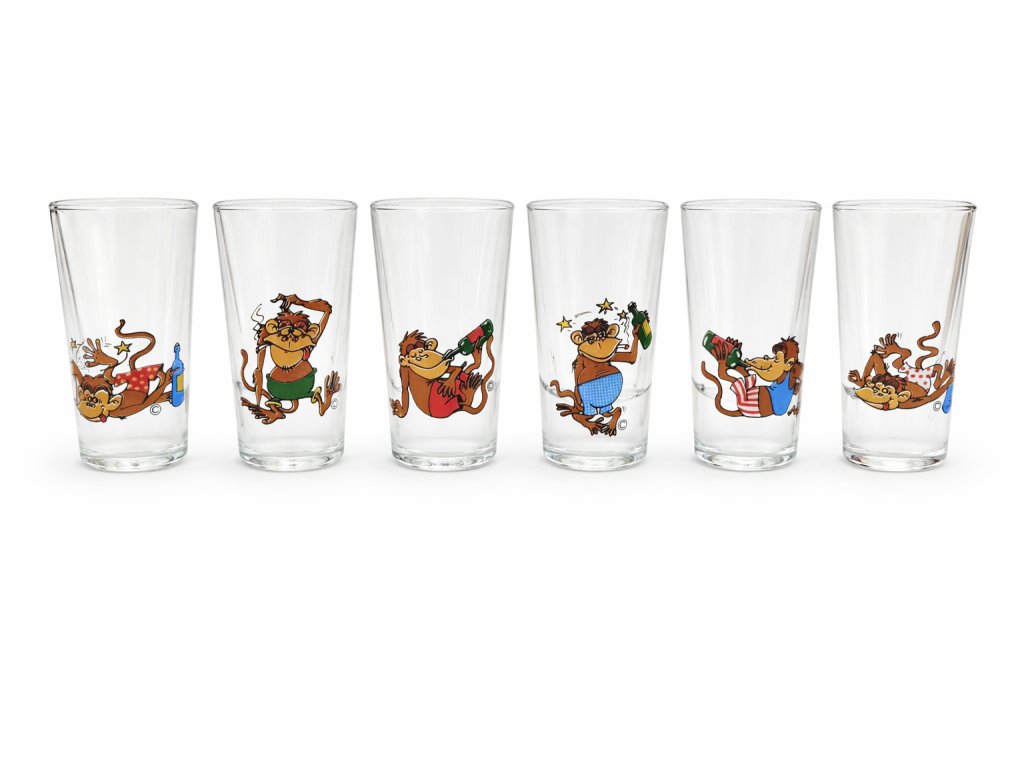 Vtipné skleněné štamprle s dekorem opic jsou ideální volbou pro vtipné servírování pálenek i domácích likérů. Kombinují vtip s praktickým provedením, které se hodí jak pro běžné použití, tak jako vtipný doplněk při jakýchkoliv příležitostech.
