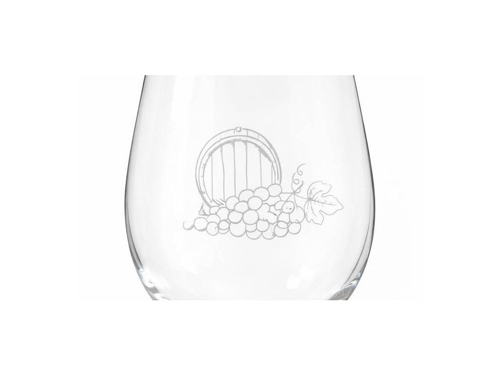 Sklenička na víno s potiskem soudku a hroznu. Vhodné jako dárek, nejen pro vinaře a sadaře, ale také pro milovníky vína a jiných nápojů.