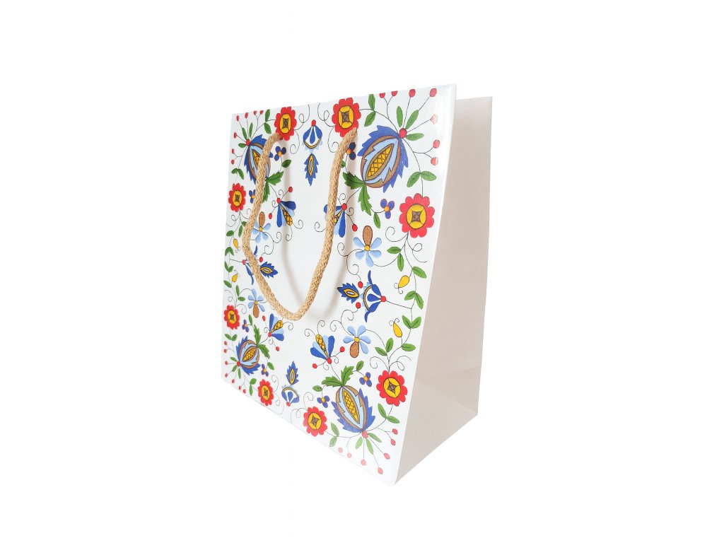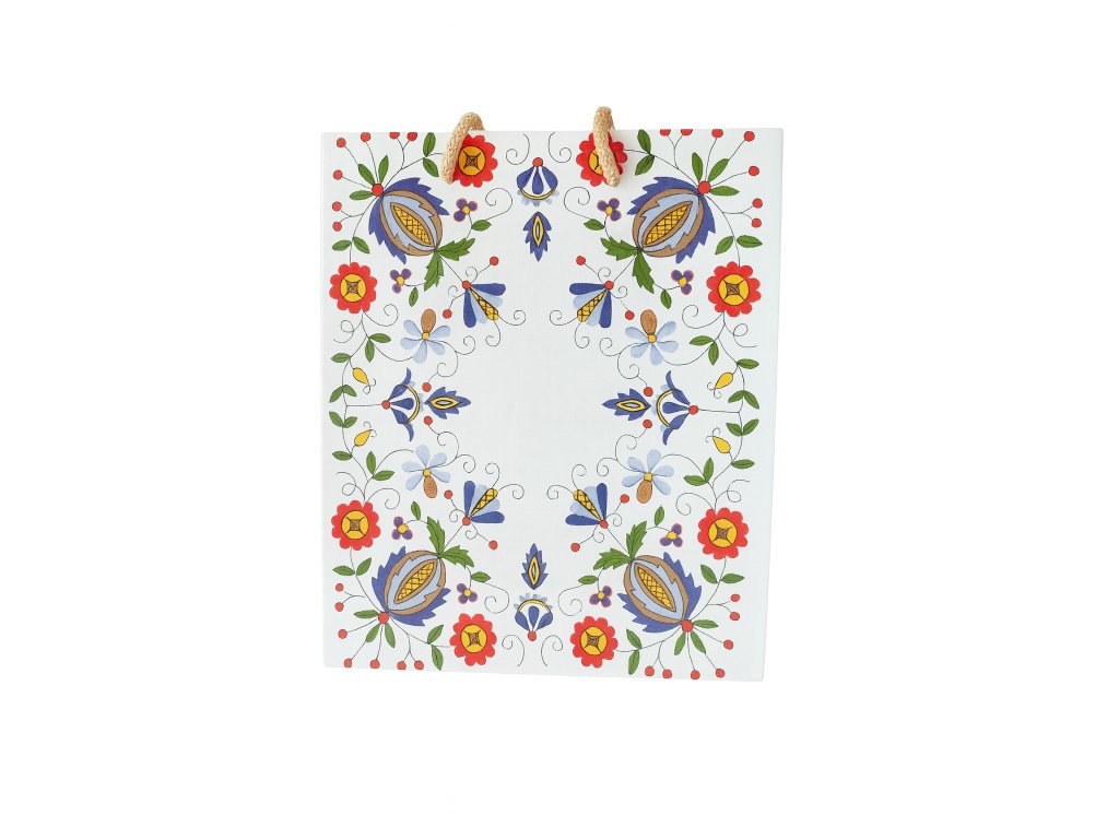 Dárková taška s folklorním motivem je elegantní volbou pro dárek. Kvalitní provedení a dekorativní design s tradičním vzorem dodají dárku slavnostní vzhled a zvýrazní jeho hodnotu.
