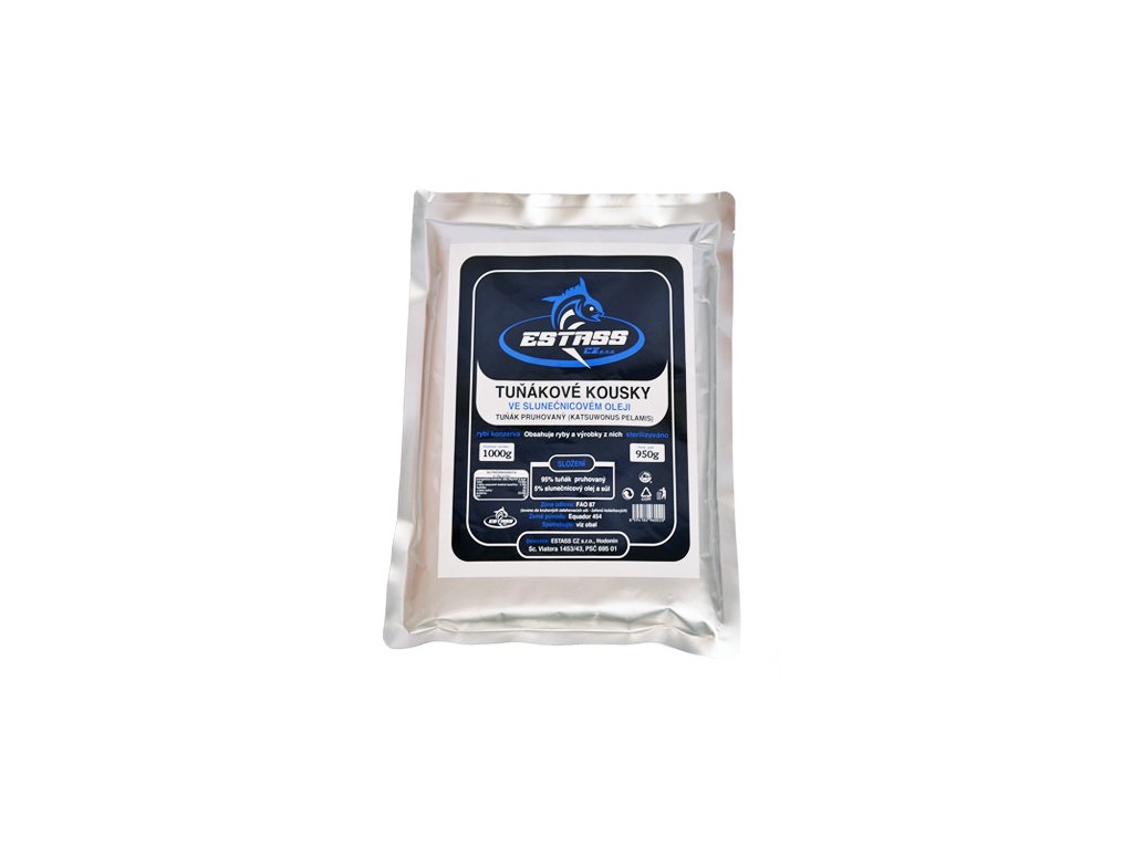 Tuňák Estass v tomto balení obsahuje velké a malé kousky kvalitního tuňáka pruhovaného. Neobsahuje žádné mleté kosti a kůže, tudíž nezapáchá. Maso je krásně růžové a velmi dobře chutná. Maso je bohaté na bílkoviny s malým podílem tuku.