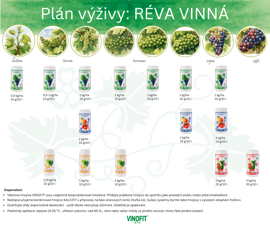 Vysoce koncentrované listové hnojivo pro révu vinnou s vyváženým obsahem makro- a mikroprvků podporuje zdravý růst, kvetení i dozrávání hroznů. Díky rychlé přijatelnosti živin pomáhá předcházet deficitům a přispívá k vyšší kvalitě a vyrovnanosti sklizně během celé vegetace.